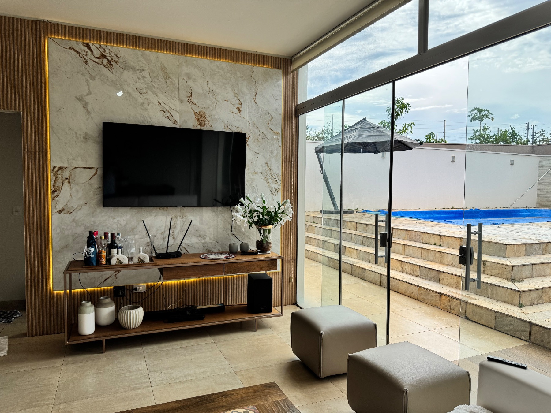 Para completar, a residência possui uma bela piscina privativa, ideal para aproveitar os dias de sol com total conforto.