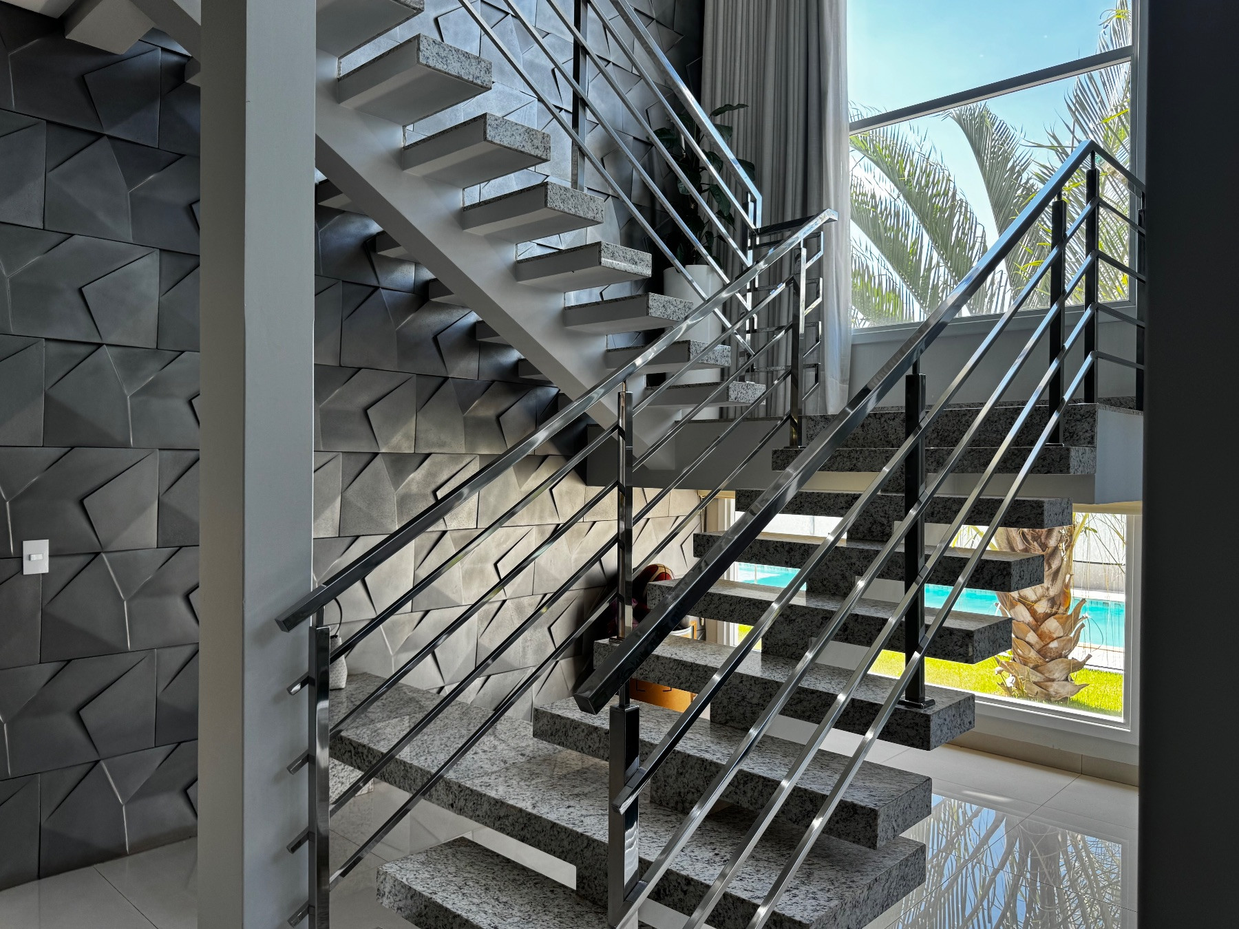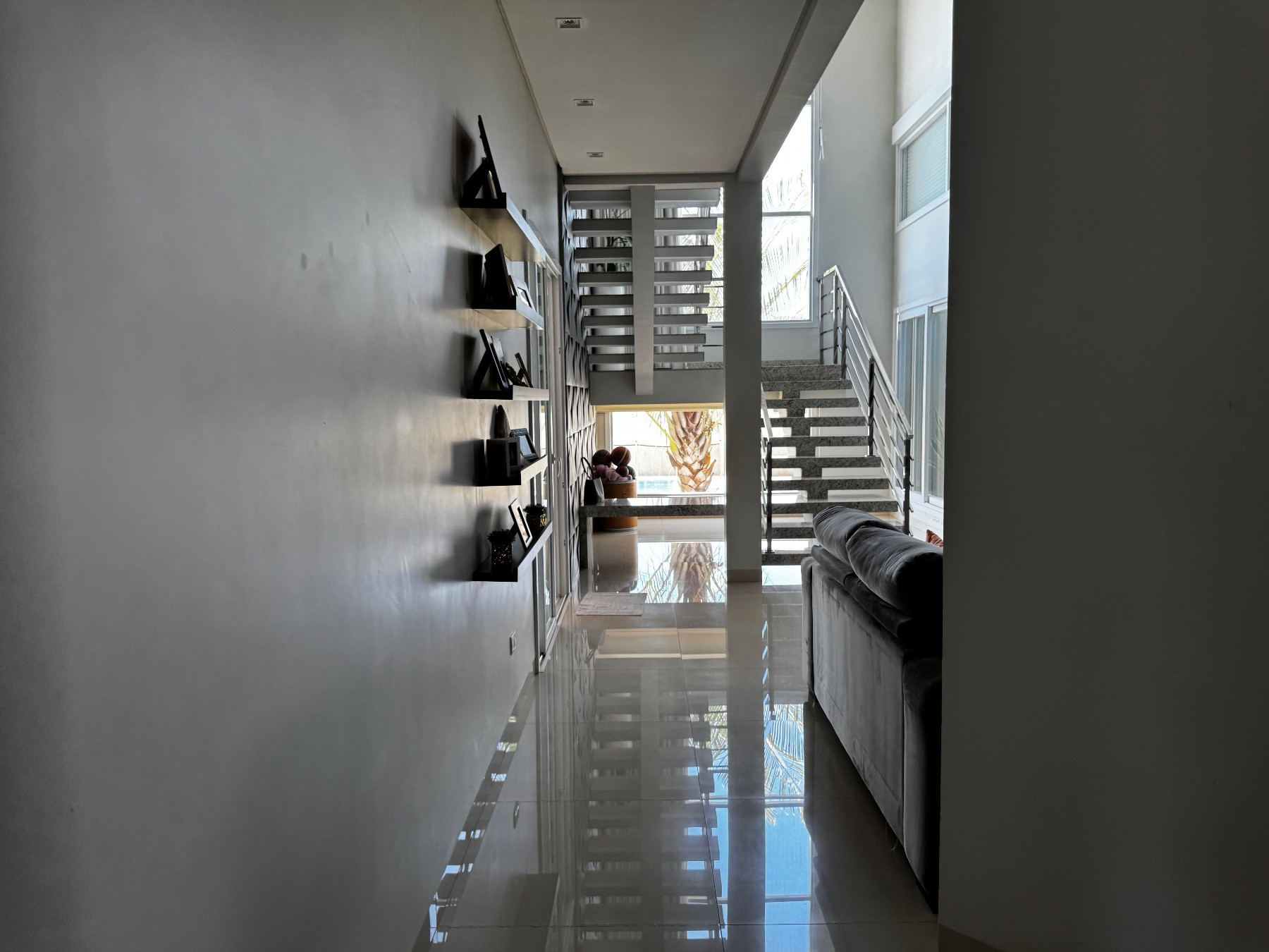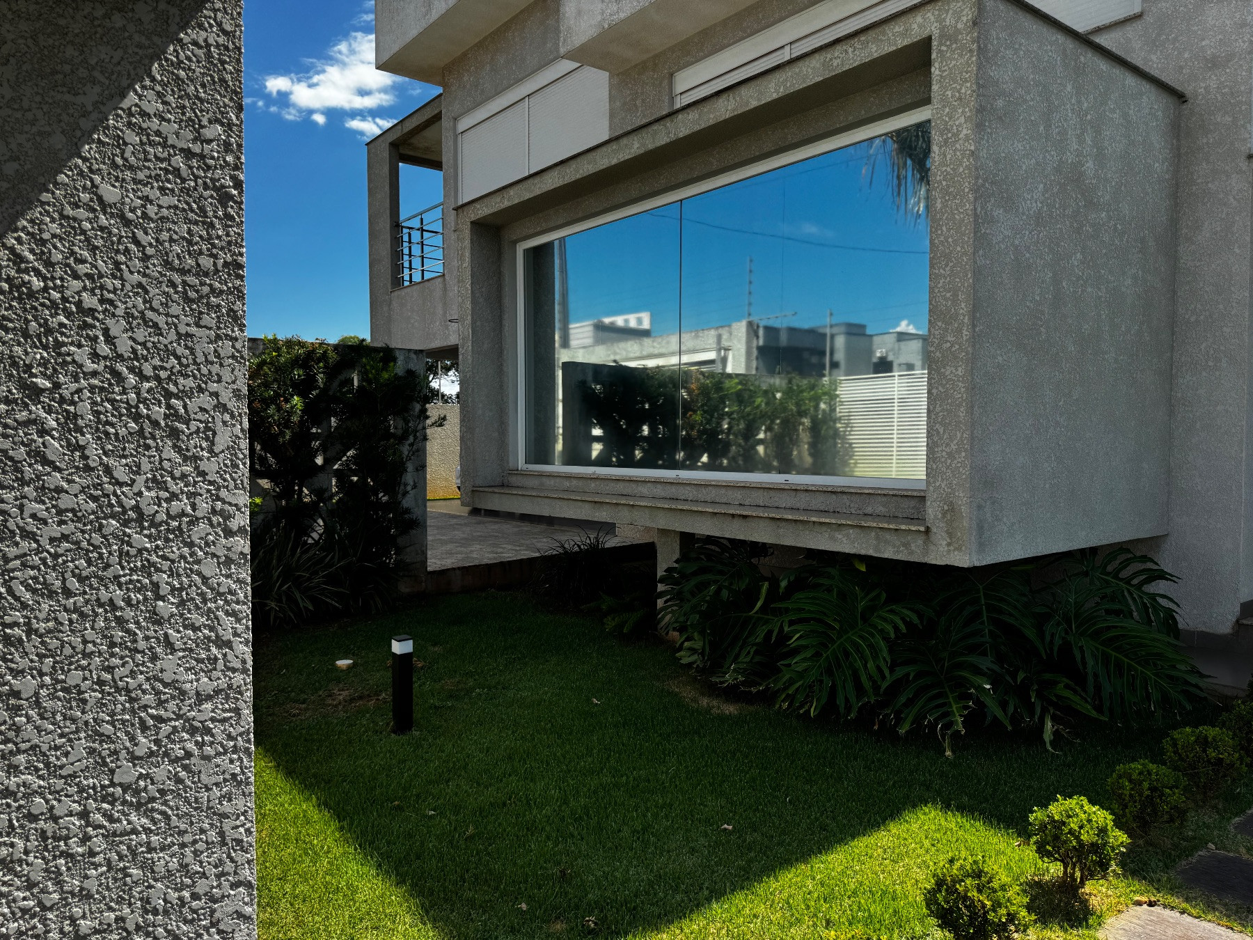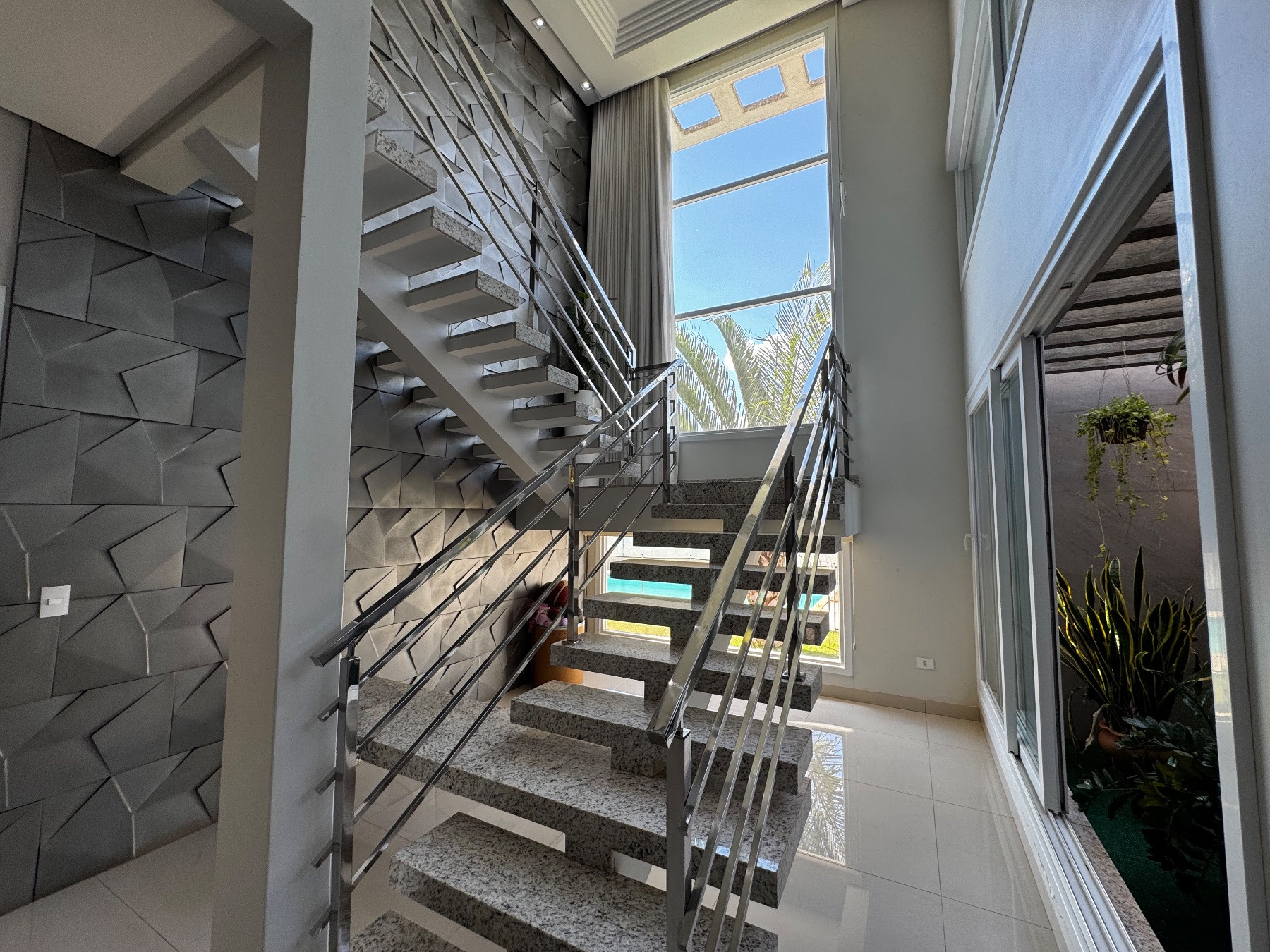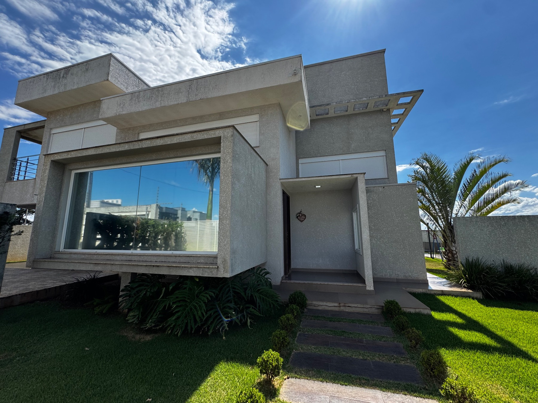 O sobrado apresenta linhas contemporâneas, imponência e acabamento sofisticado. A fachada moderna valoriza iluminação natural e destaca o alto padrão da residência logo na chegada.