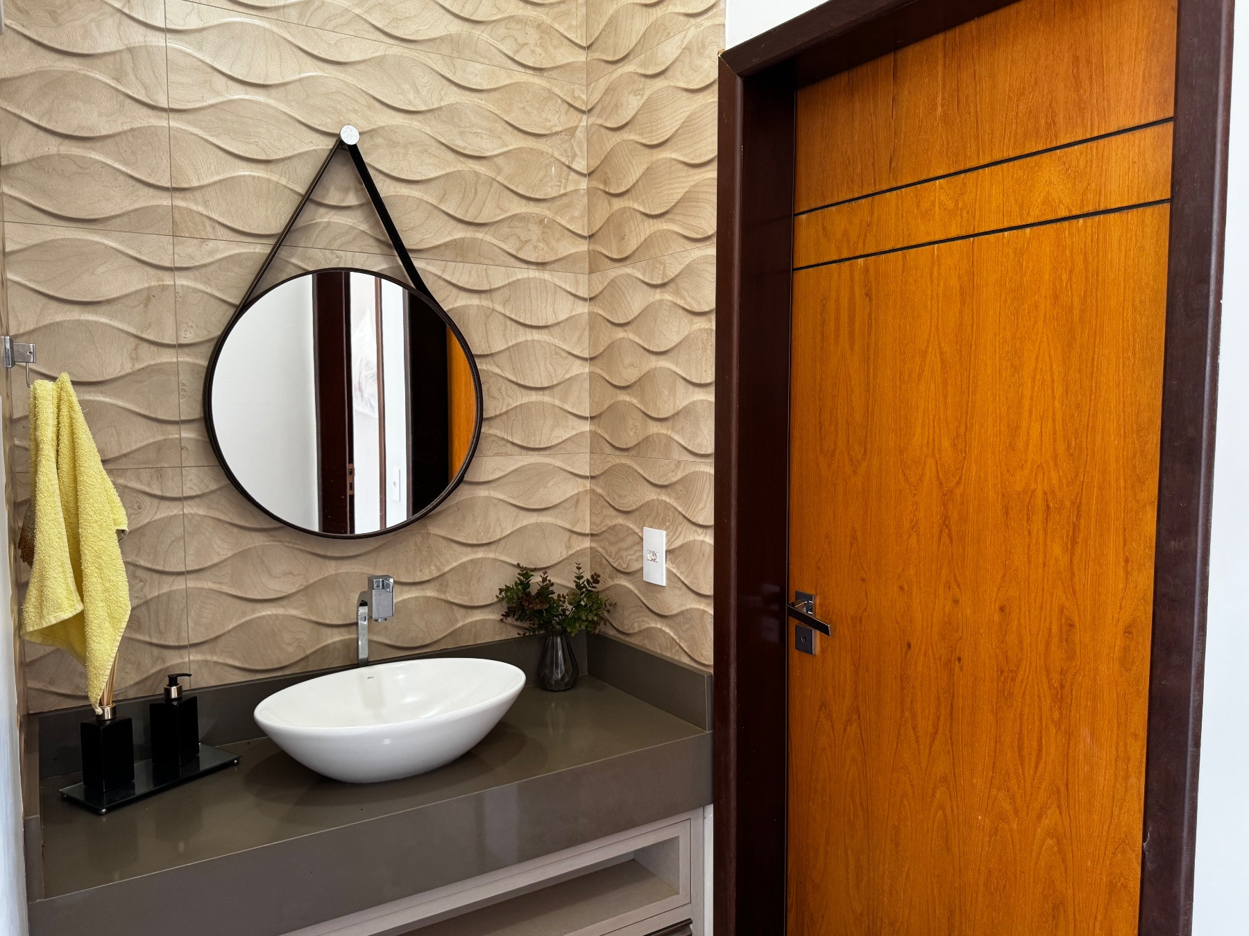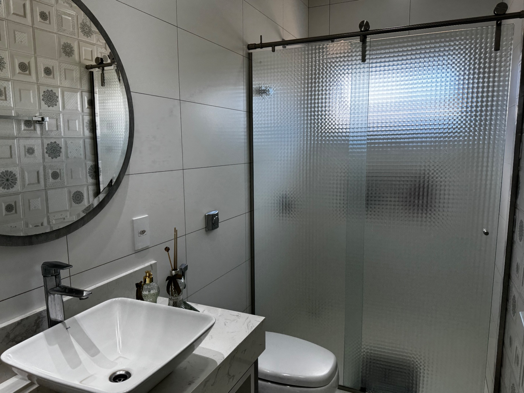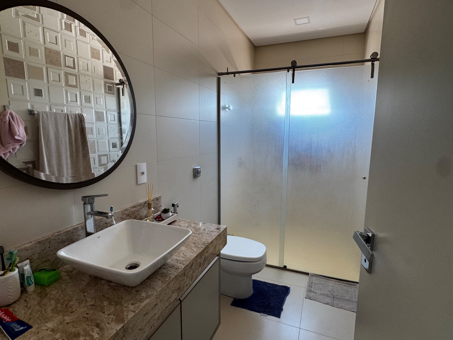 O imóvel dispõe de três banheiros sociais, todos com excelente padrão de acabamento, design moderno e ótima distribuição de espaço.