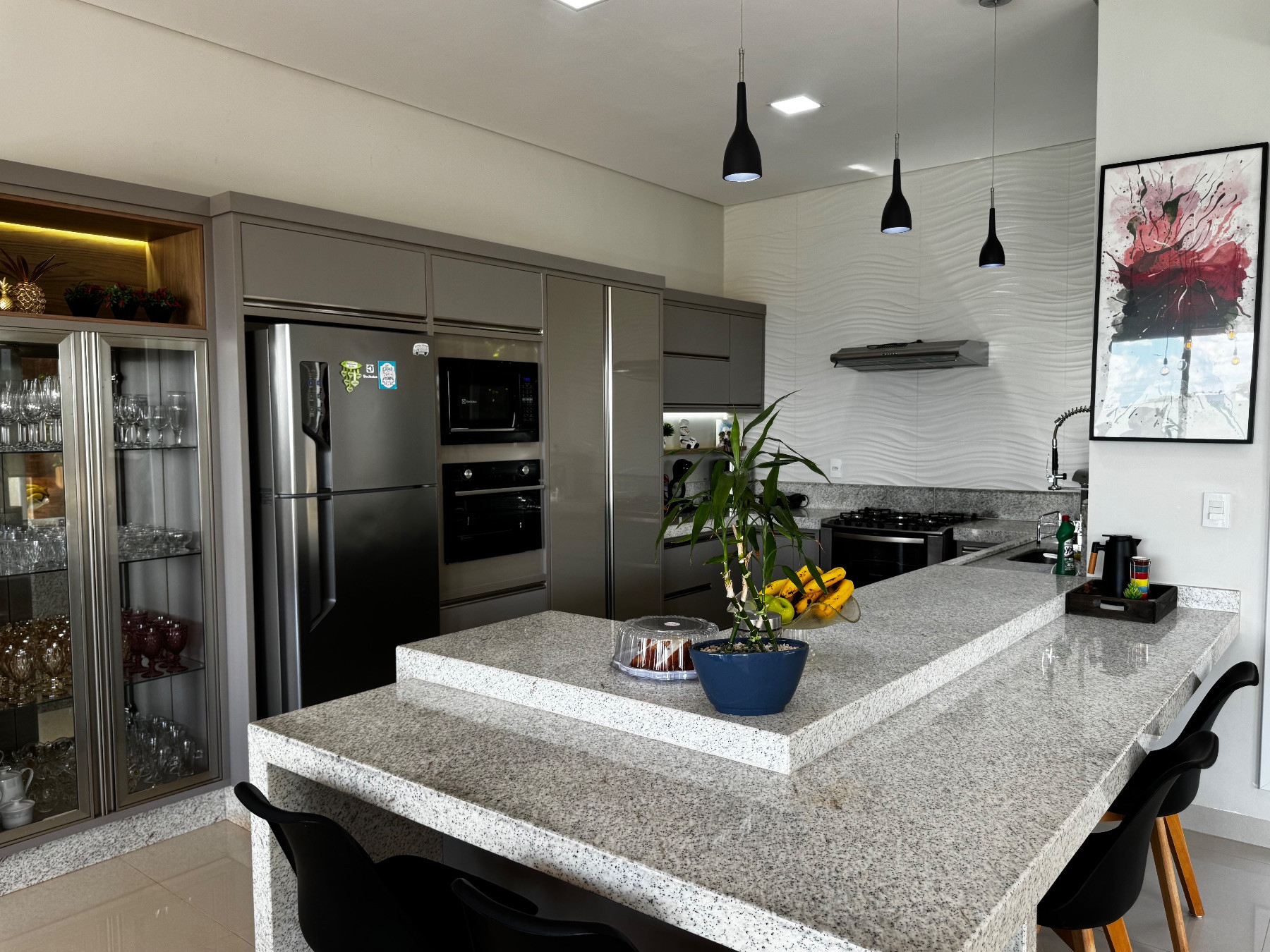A cozinha espaçosa conta com mesa de jantar integrada, proporcionando praticidade no dia a dia e tornando o ambiente ideal para reunir a família com conforto e funcionalidade.