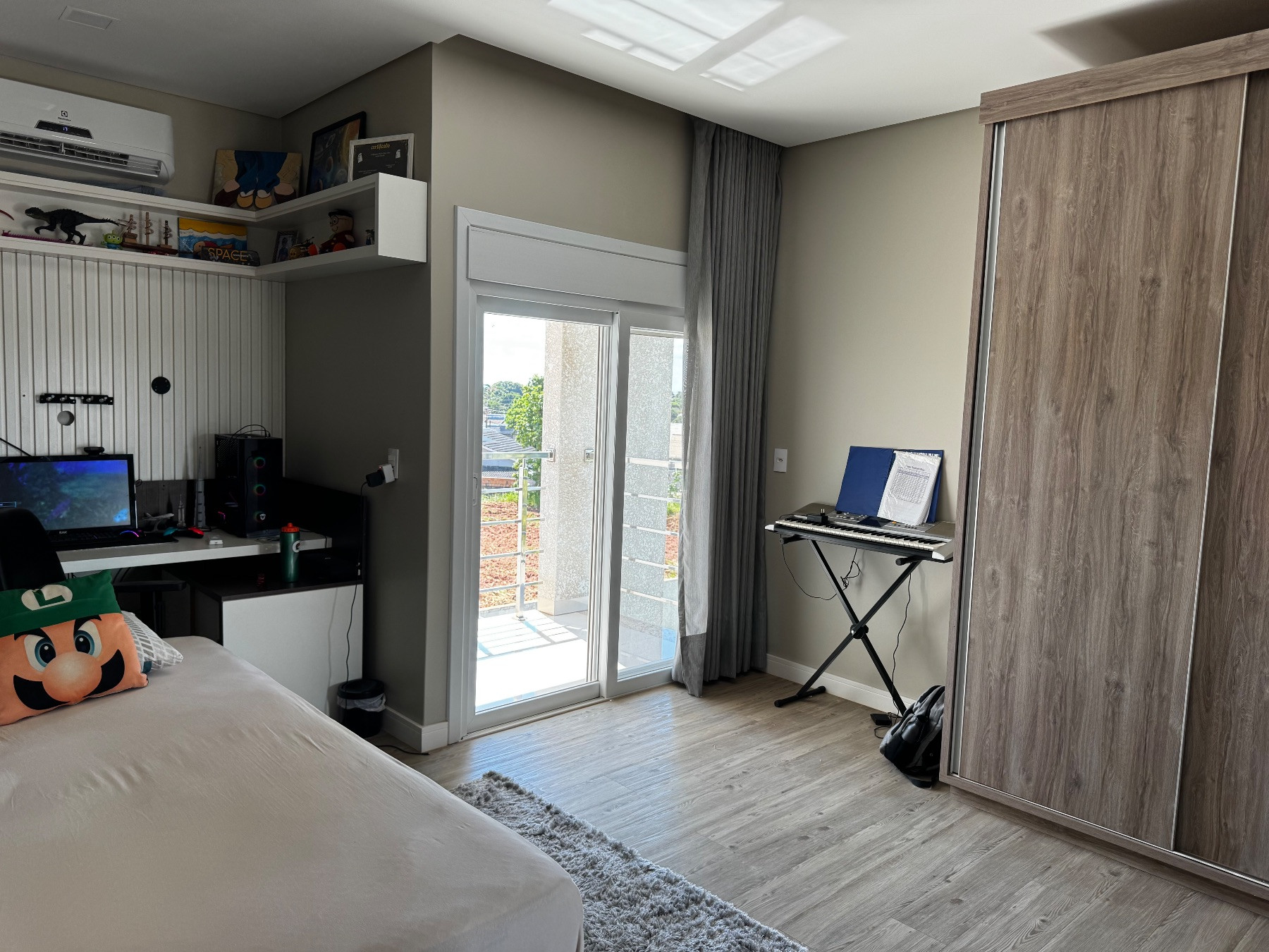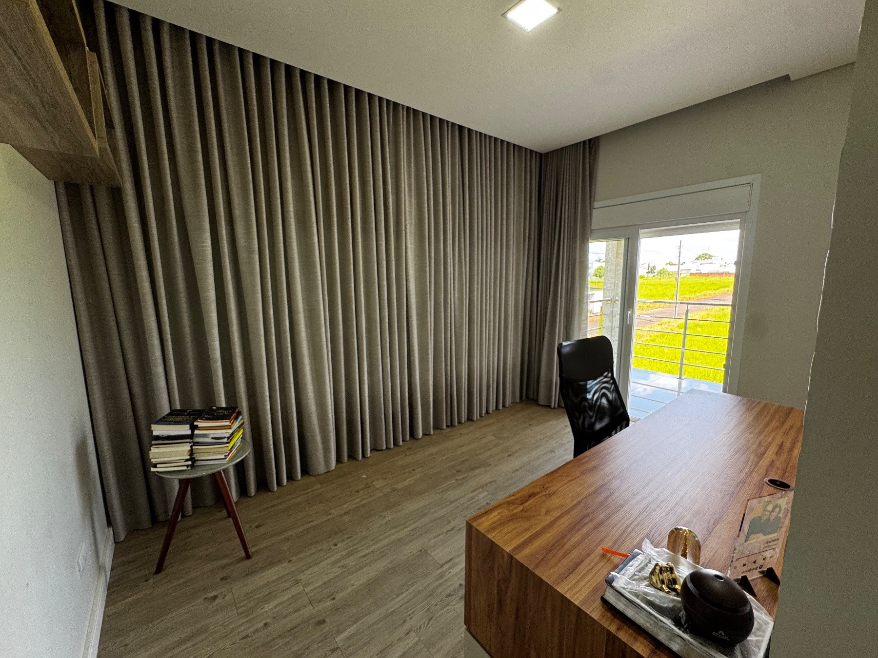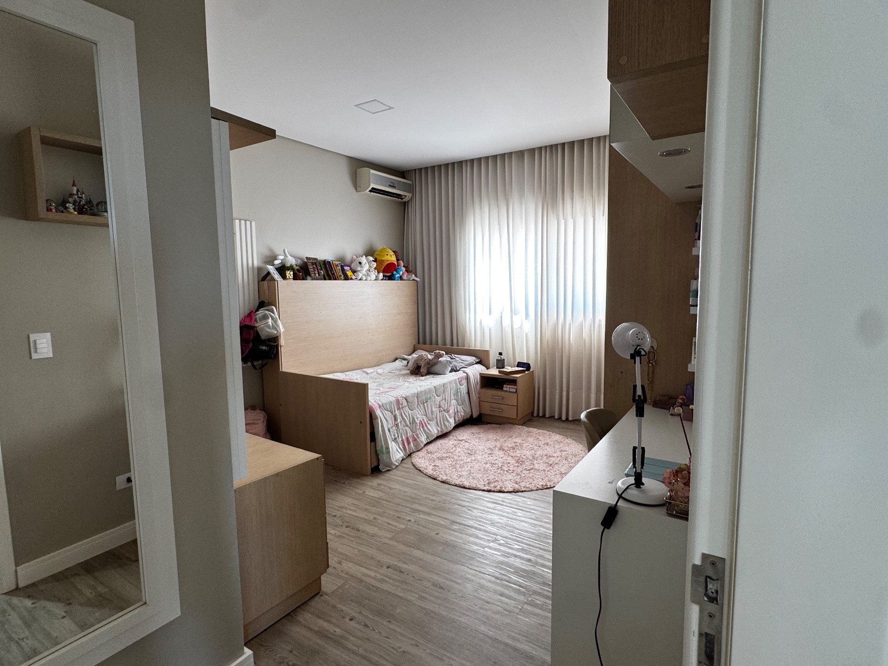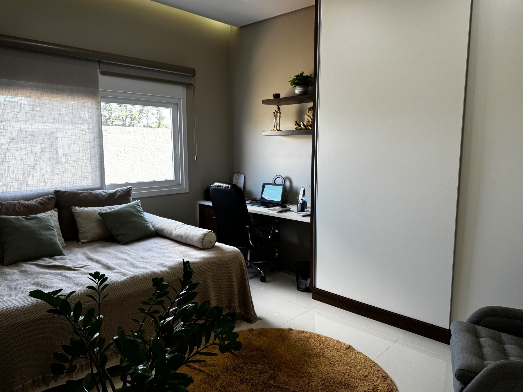 A suíte principal é um verdadeiro refúgio privativo, com amplo espaço, closet planejado e escritório reservado, oferecendo conforto, organização e tranquilidade.