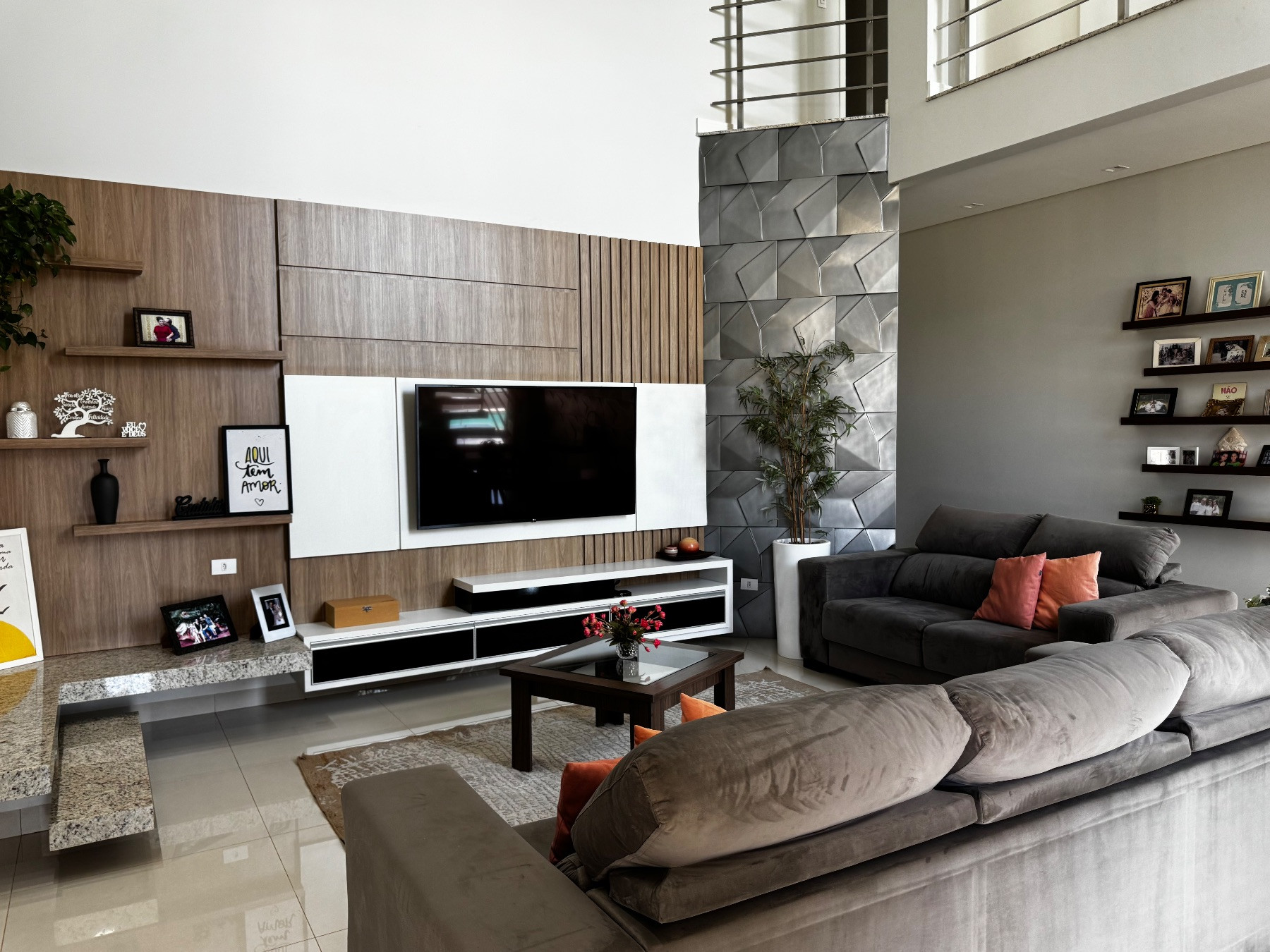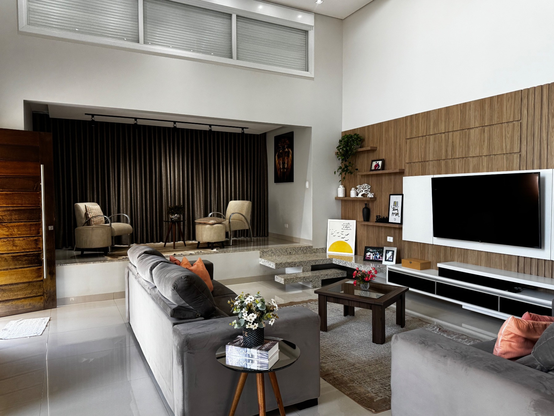 A sala ampla oferece um ambiente confortável e elegante, com excelente iluminação e integração harmoniosa aos demais espaços sociais, perfeita para receber visitas e desfrutar momentos em família.
