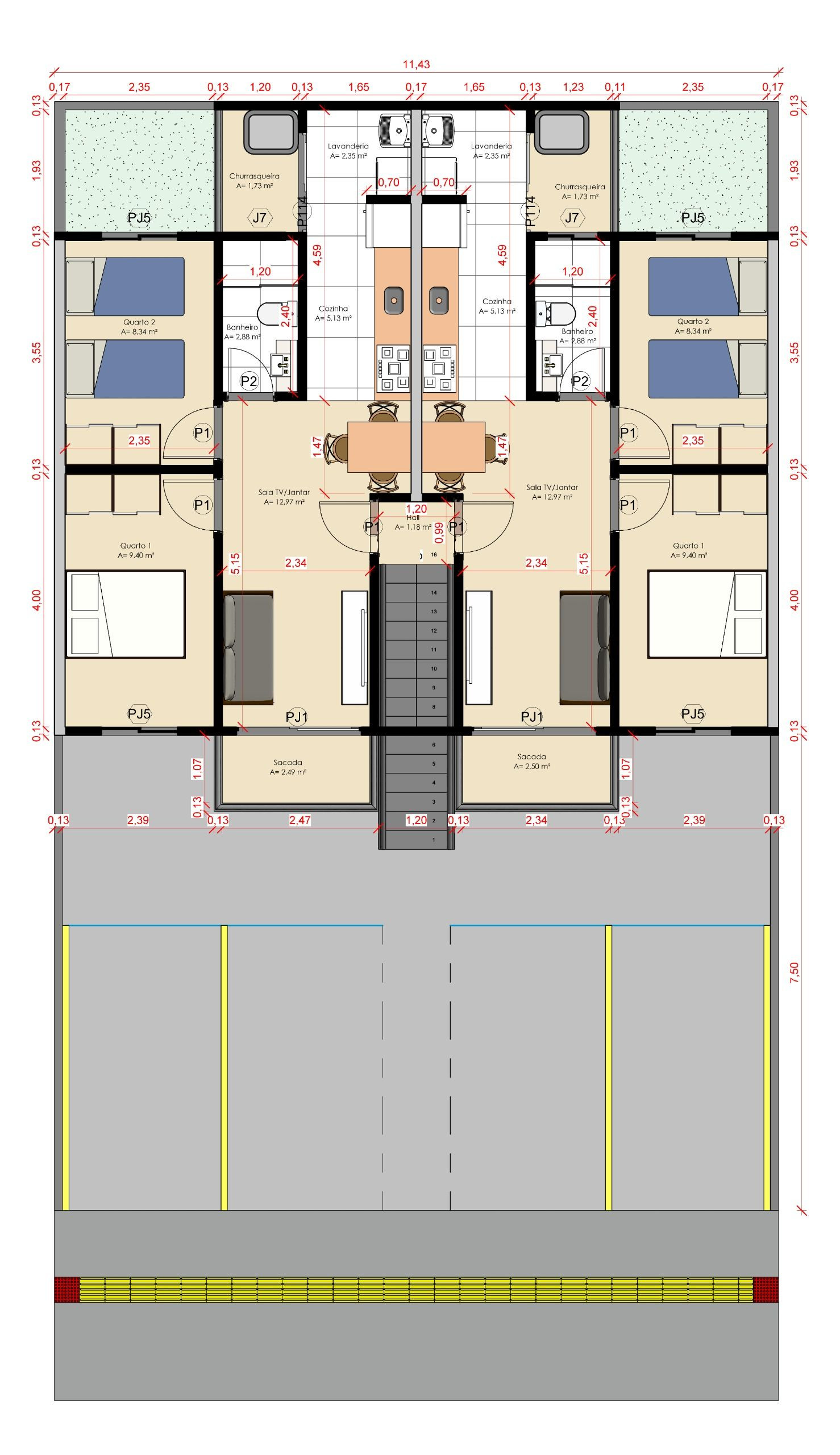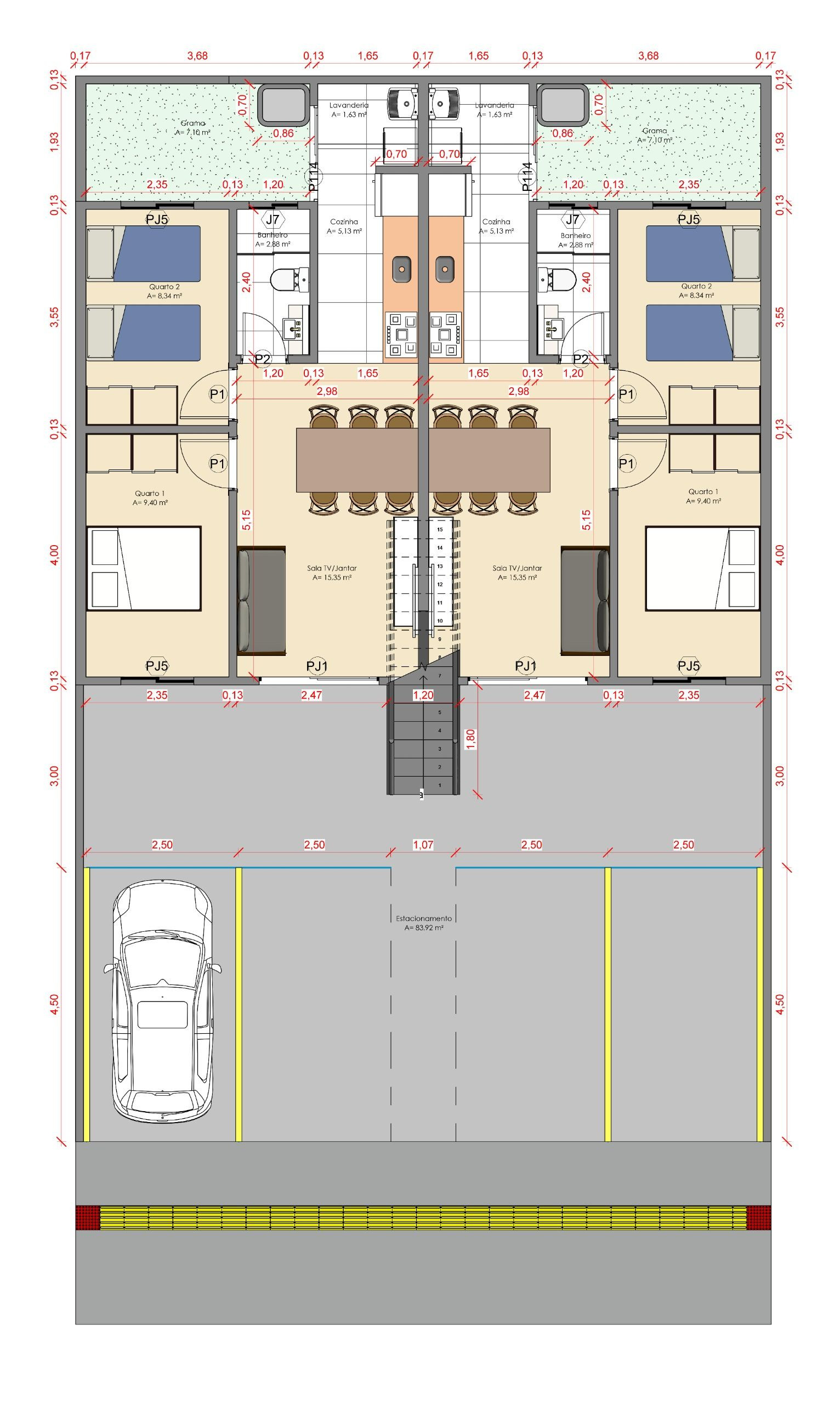 Cada unidade possui aproximadamente 50m², com: